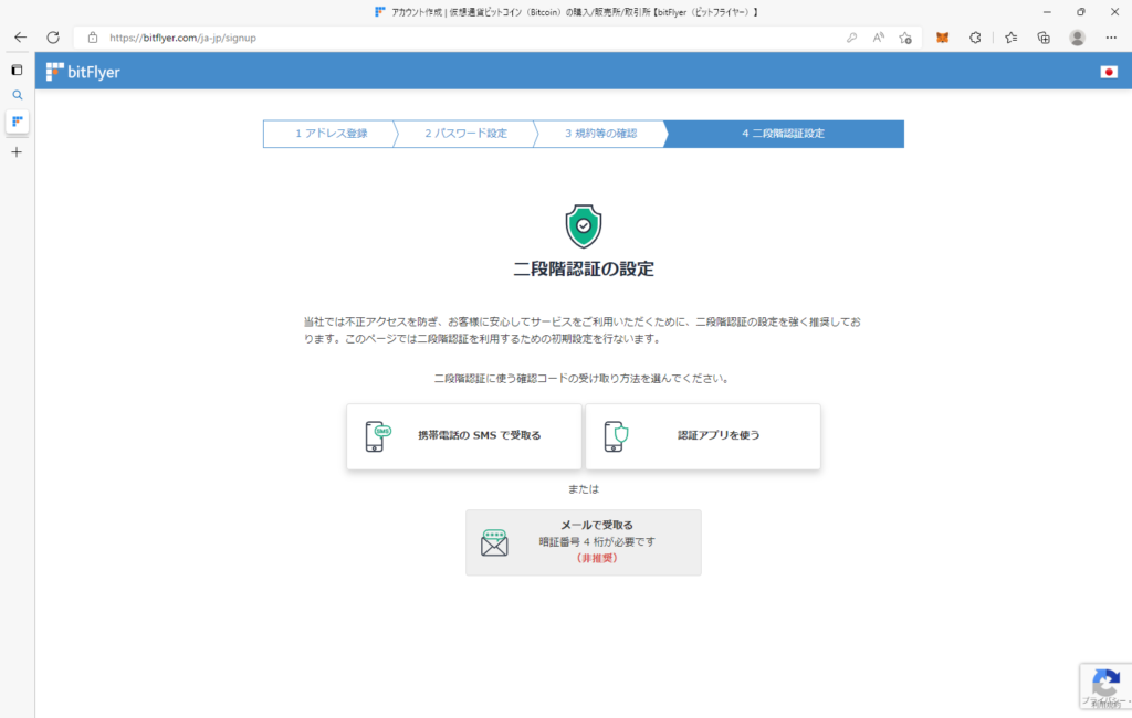 携帯にSMSが送られてきますので、そちらの数字を入れれば、完了です。