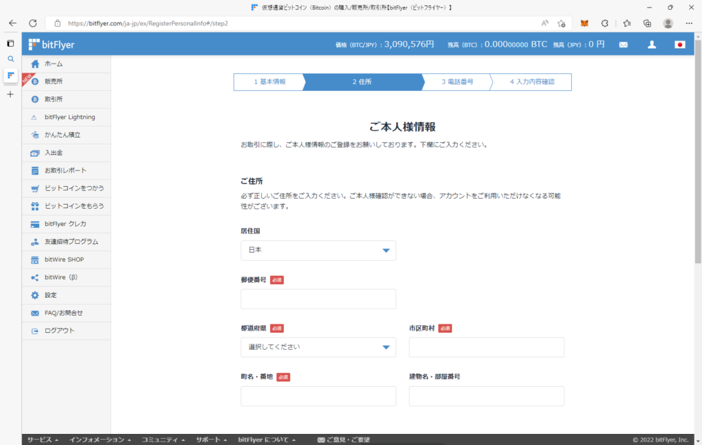 bitFlyerで仮想通貨を買う手順は以下の通りです。
