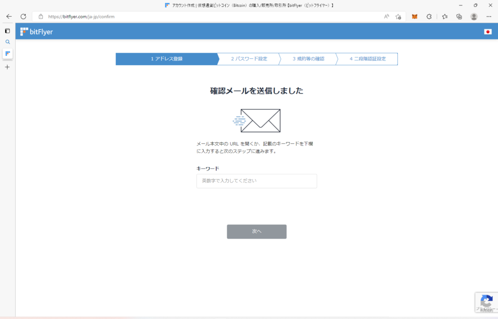 ここにご自身のメールアドレスを入れていただくと、メールに確認メールのキーワードが送られてきます。