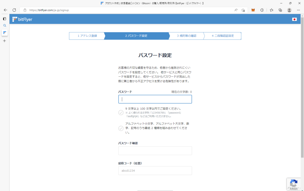 そこからはパスワード設定になります、初回のログインに必要ですので、しっかり覚えておきましょう。